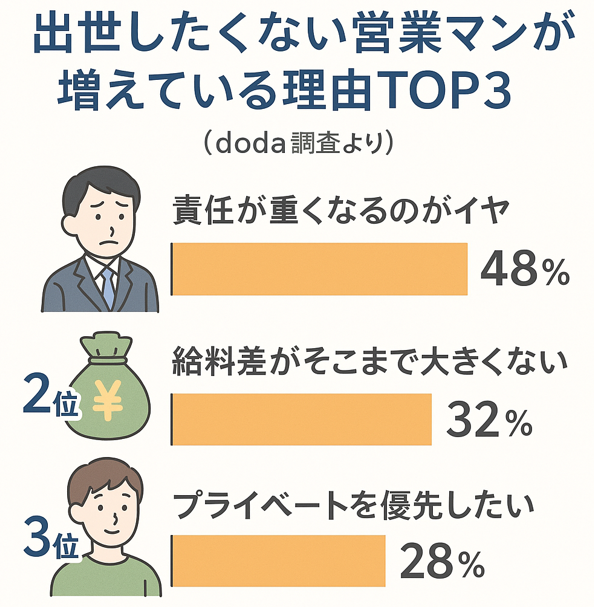 📊 出世したくない営業マンが増えている理由TOP3(doda調査より)