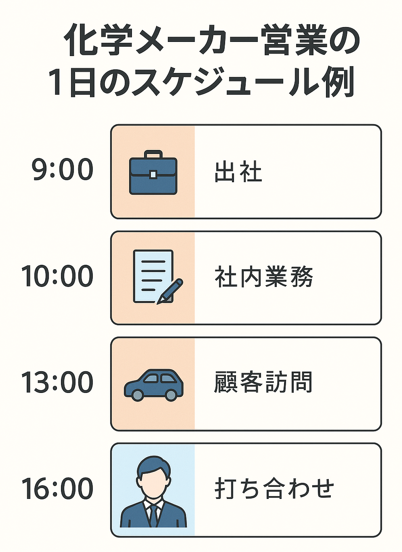 化学メーカー営業の1日スケジュール【社内7割・外回り3割の働き方】