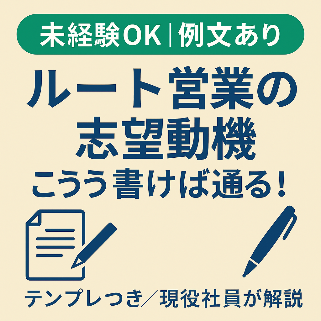 「志望動機=悩むのが普通」「本音はお金や安定が理由でも大丈夫!」を前提に、“就活・転職どちらにも使える”ルート営業 志望動機の完全マニュアルです。