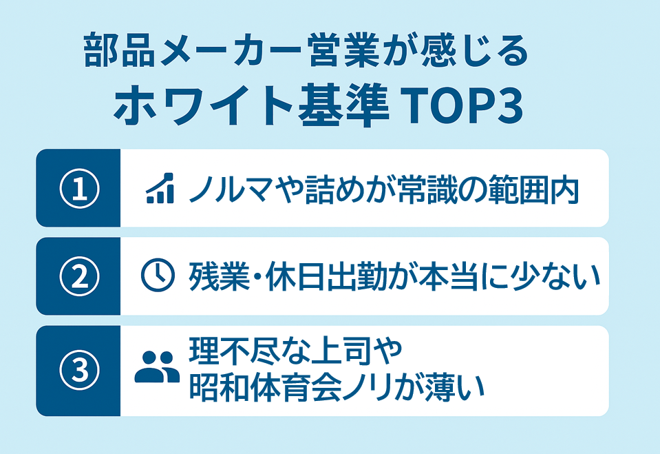 部品メーカー営業が感じる「ホワイト」の基準TOP3