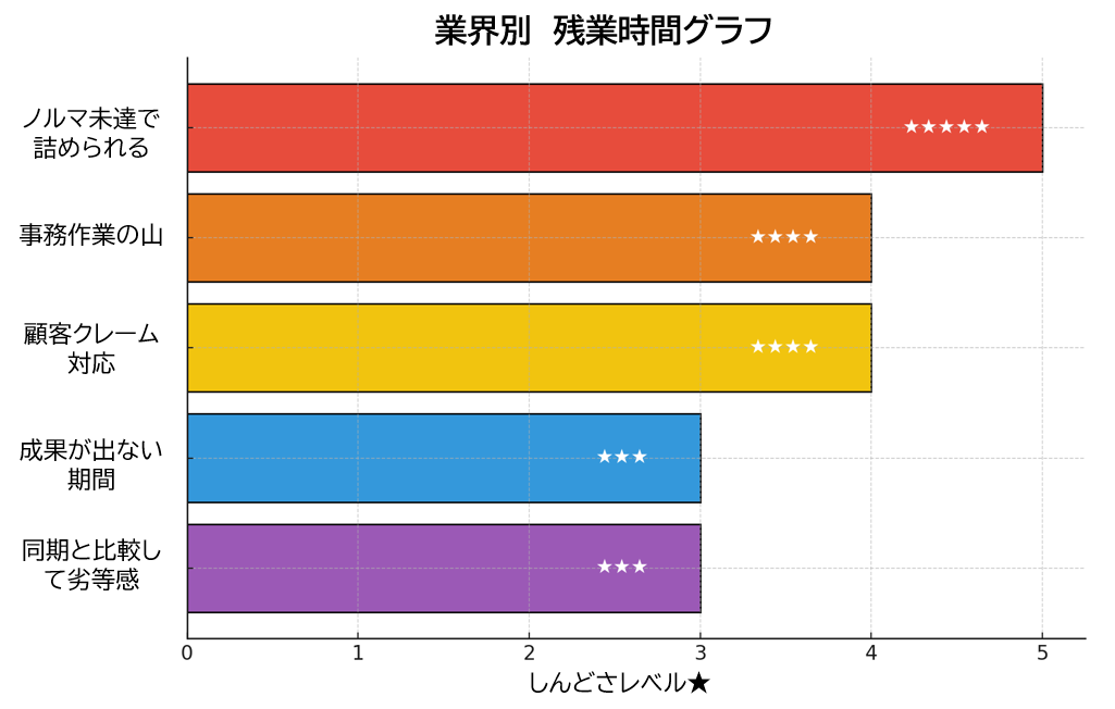 - ノルマ・クレーム・事務作業など「あるある」が山積み