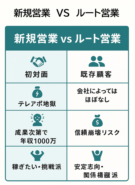 - ルート営業=安定するが“ぬるま湯リスク”あり