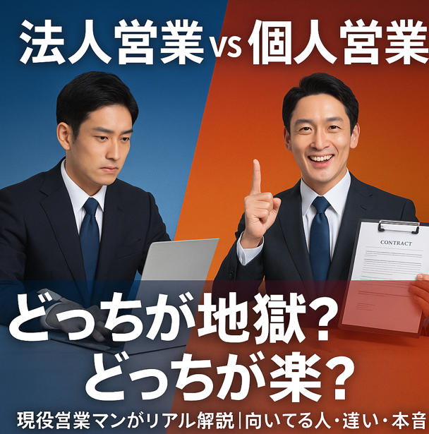 この記事では、法人営業と個人営業の**リアルな違い・向いている人の特徴・それぞれの“地獄ポイント”**を、現役営業マンの視点で解説します。